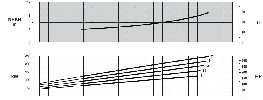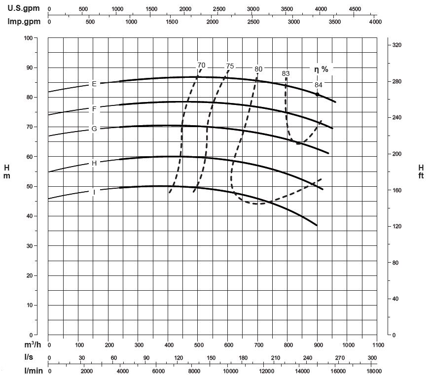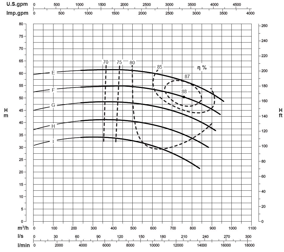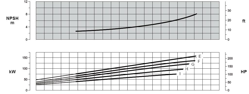 Kurvor som fastställts för vätskedensitet 1000 kg / m³ - viskositet 1 mm² / s - temperatur 20°C, η% - Pump verkningsgrad