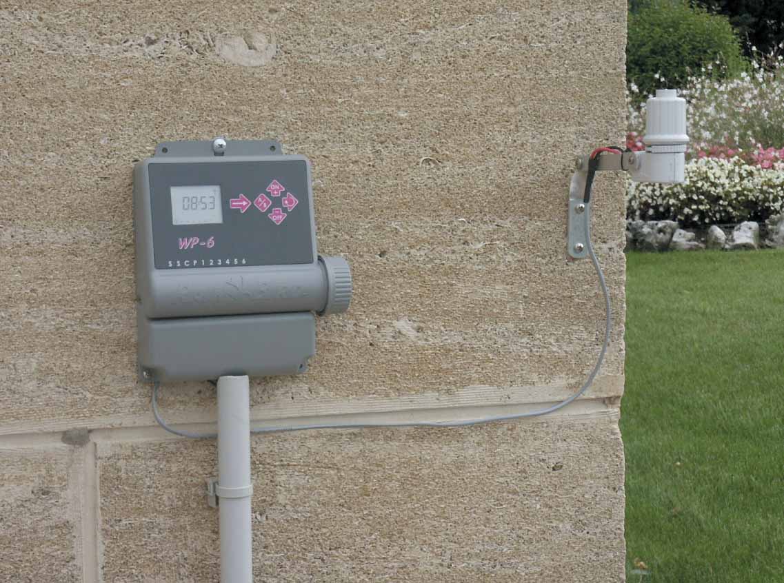 Regnsensor, som stoppar bevattningen vid regn, kan anslutas.