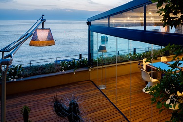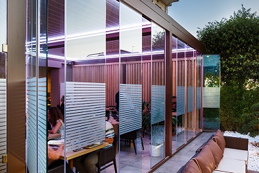 Solskydd SKATE Den skjutbara och fällbara glasväggar är en innovativ och elegant patenterat system, med enorma sceniska effekter, liksom hög säkerhetsstandard och tillförlitlighet.