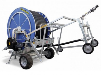 Bevattningsmaskiner IDRO TURBOSTAR ACTIVE vridbarDenna maskin är utrustad med PEMD högkvalitetsslang, komplett med flexibel anslutningsslang och avstängningsventil för övertryck. En sektorstyrd bevattningskanon som vattnar i båda riktningarna, 4 olika stora munstycken ingår. Maskinen drivs av en turbin med hög kvalitet och stor tolerans. Turbinerna har en hög verkningsgrad.