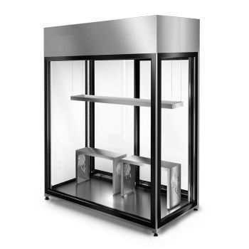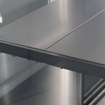 Modifiering av höljet ger dig ännu fler visningsalternativ. Du kan fritt justera nivåerna på de justerbara hyllorna för att skapa det optimala arrangemanget för dina blomkompositioner. Tack vare det panoramaliknande, härdade glaset får du perfekt utsikt från alla håll. Du ger blommorna det utrymme de behöver, eftersom du kan placera dem i behållare, hänga färdiga kompositioner på tvärstången eller visa upp dem på justerbara hängande hyllor.