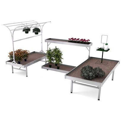 - Bordsplattor med bevattningsmöjligheter ger plantorna längre hållbarhet och en bättre kvalitét.