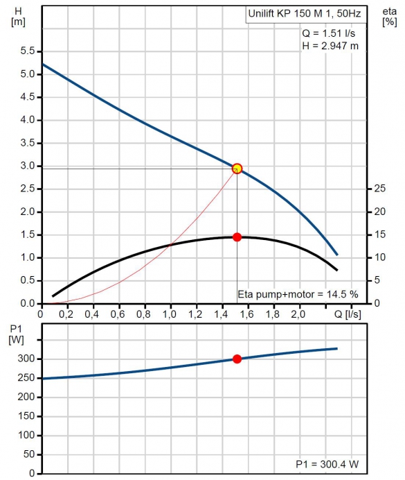 Resulterande lyfthöjd för pumpen 2,947 m