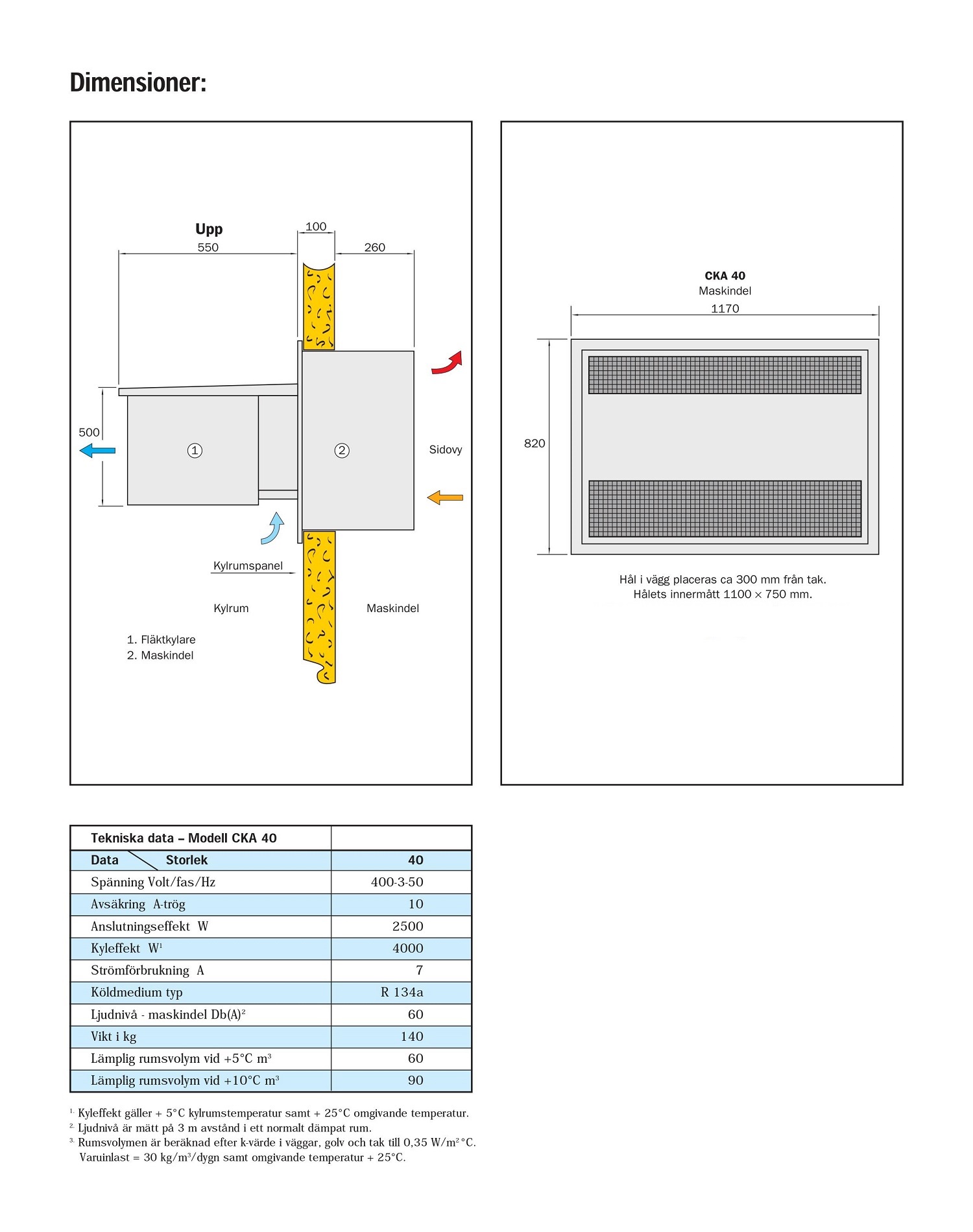Lämplig rumsvolym vid +5°C m³ 5 m³ 9 m³ 15 m³ 25 m³ 35 m³ 60 m³