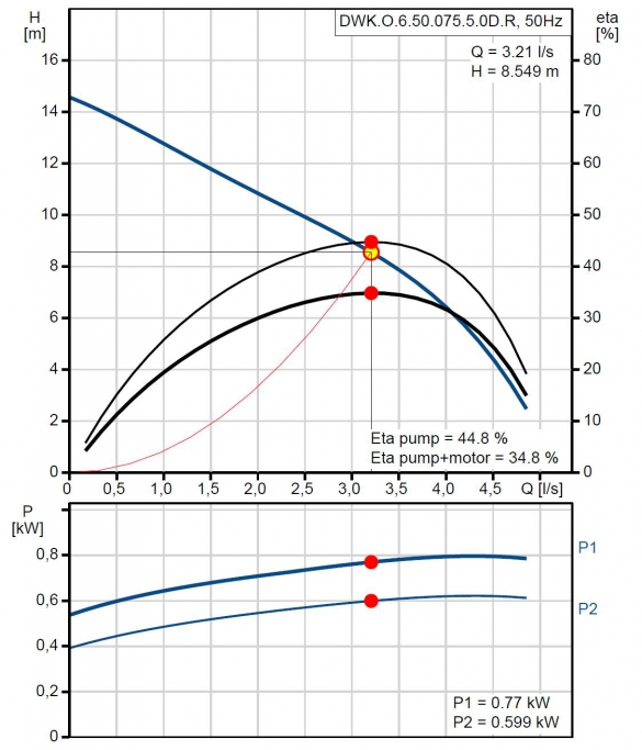 • Länspump Grundfos DWK.O.6.50.075.5.0D.R 0,75kW 3,21 l/s 8,54m 3x400V 50Hz