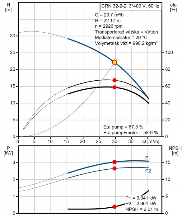 • Pump centrifugalpump vertikal flerstegs Grundfos CRN 32-2-2, 3kW 30m³/h 22,6m