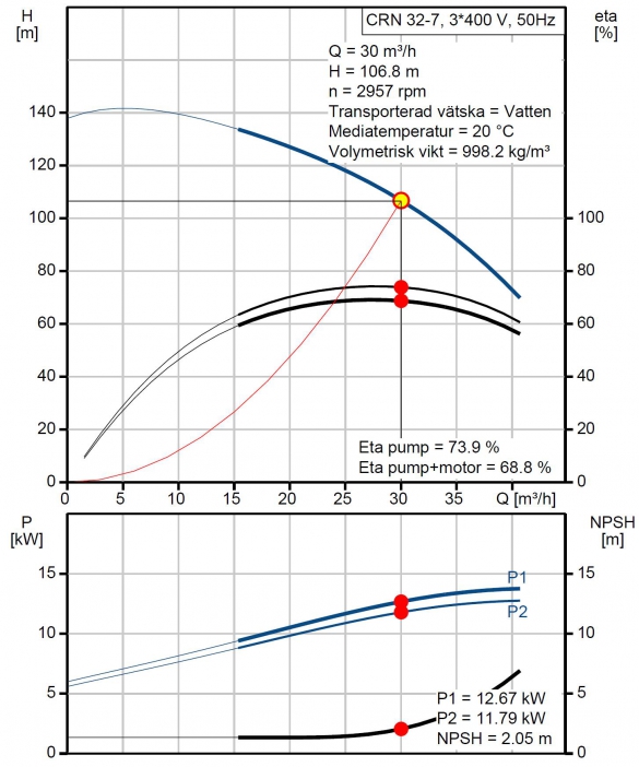 Resulterande lyfthöjd för pumpen 106,6 m