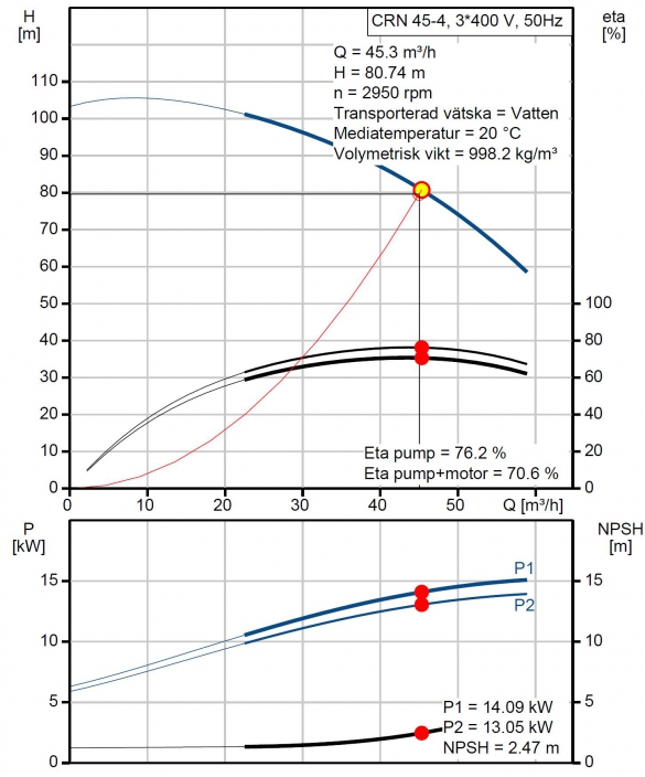 • Pump centrifugalpump vertikal flerstegs Grundfos CRN 45-4,  15kW 45m³/h  79,6m