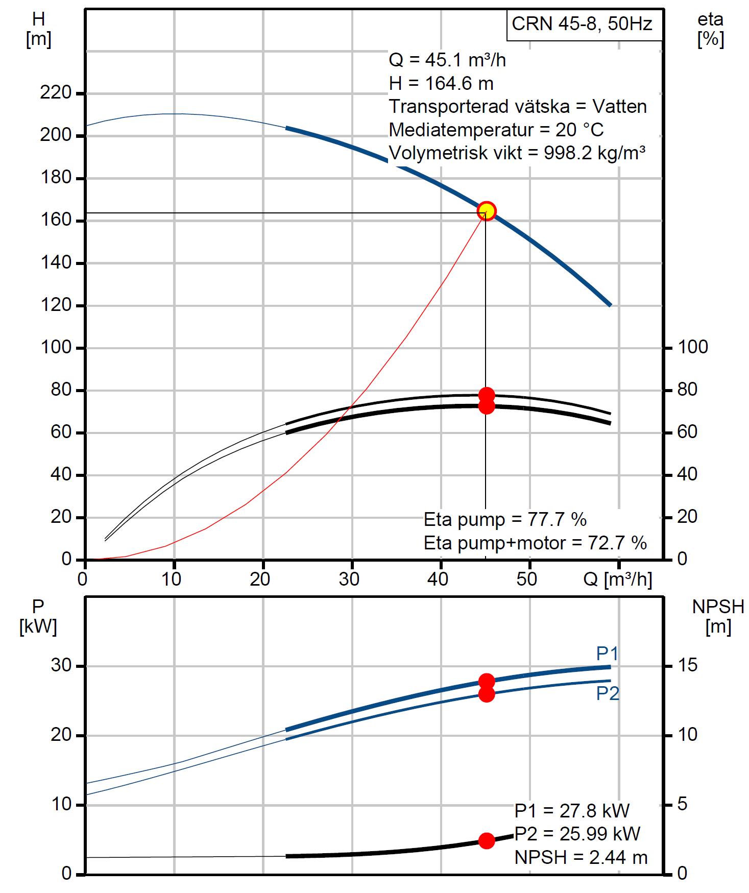 Resulterande lyfthöjd för pumpen 164,6 m