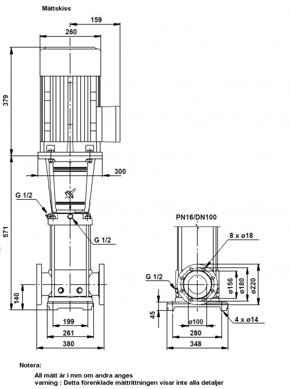 Vertikal, normalsugande, flerstegs, in-line centrifugalpump för installation i rörledning eller montering på fundament.