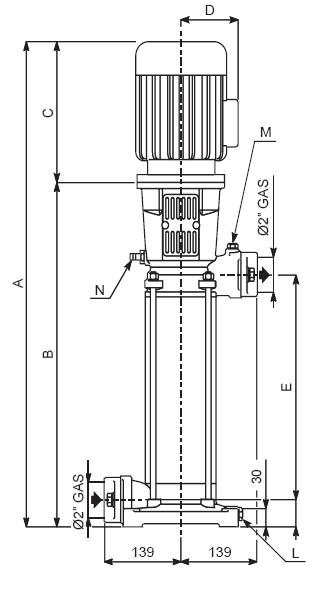 M=Pump fyllning =3/8 GAS, N=Dropp Avlopp =3/8 GAS, L=pump Avlopp =1/4" GAS